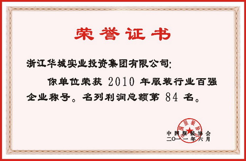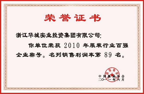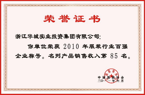 華城集團(tuán)作為平湖服裝行業(yè)的骨干企業(yè),不僅排列于平湖服裝行業(yè)十強(qiáng)之首,而且在全國服裝行業(yè)百強(qiáng)企業(yè)排序中,浙江華城實(shí)業(yè)投資集團(tuán)有限公司連續(xù)榜上有名,榮獲2010年全國服裝行業(yè)百強(qiáng)企業(yè)榮譽(yù)稱號(hào),名列利潤總額第84名;產(chǎn)品銷售收入第85名;銷售利潤第89名共三個(gè)指標(biāo)的榮譽(yù)稱號(hào),這是集團(tuán)公司自2005年以來連續(xù)六年獲此殊榮,成為嘉興地區(qū)唯一能連續(xù)榮獲全國服裝行業(yè)百強(qiáng)企業(yè),顯示了華城集團(tuán)努力拼搏的成功與輝煌。華城能連續(xù)跨入中國服裝百強(qiáng)企業(yè)行列,創(chuàng)下企業(yè)發(fā)展史上前所未有的佳績,榮譽(yù)實(shí)為來之不易。這是全體華城員工在董事長的正確領(lǐng)導(dǎo)下,同心同德、奮力拼搏、努力奉獻(xiàn)共同取得的成果。華城人始終堅(jiān)信服裝企業(yè)生命力的長短來于理念,效益的高低在于管理。我們?nèi)A城從小到大、從弱到強(qiáng),能如此充滿生機(jī)與活力,再一次證明了先進(jìn)的企業(yè)文化是企業(yè)生存和發(fā)展的內(nèi)在動(dòng)力。文化凝聚人心,文化是動(dòng)力之源,文化是企業(yè)提升核心競爭力的靈魂。企業(yè)形象靠企業(yè)文化來塑造,企業(yè)聲譽(yù)靠企業(yè)文化來傳播,企業(yè)素質(zhì)靠企業(yè)文化來提高,企業(yè)精神靠企業(yè)文化來培育,企業(yè)品牌靠企業(yè)文化來宣傳。華城企業(yè)文化的形成與發(fā)展,標(biāo)志著企業(yè)已由企業(yè)經(jīng)營正走向經(jīng)營企業(yè)的進(jìn)程。