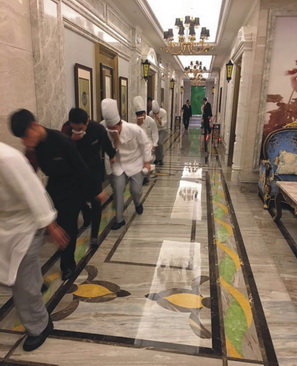最后在酒店云會所KTV二樓包廂里模擬實操突發(fā)火災(zāi)情況時疏散逃生,第一滅火力量和第二滅火力量形成。