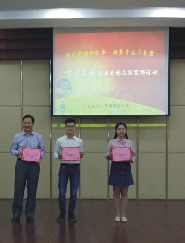 當(dāng)前位置:首頁 > 華城動(dòng)態(tài) 5月11日下午,平湖市總工會(huì)舉辦“百姓名嘴”企業(yè)專場(chǎng)選拔宣講活動(dòng);顒(dòng)以講述“平湖好故事•凝聚身邊正能量”為主題,來自全市各行各業(yè)的14名選手參賽。市宣傳部常務(wù)副部長(zhǎng)王郁春、平湖廣播電視臺(tái)副臺(tái)長(zhǎng)周謐、嘉興日?qǐng)?bào)社平湖分社副社長(zhǎng)徐迪蘭擔(dān)任評(píng)委。