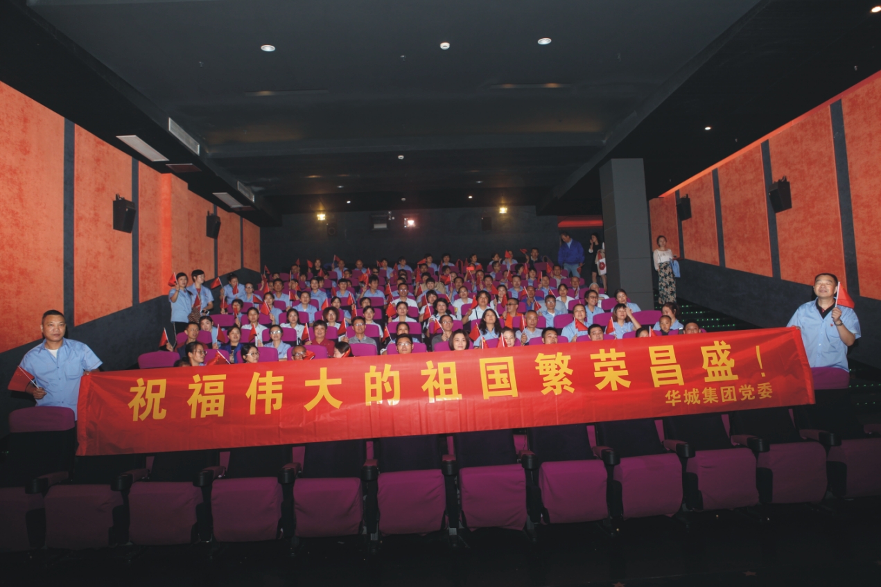 為了慶祝中華人民共和國(guó)成立70周年,在“不忘初心、牢記使命”主題教育中弘揚(yáng)愛(ài)國(guó)主義精神,全面提升黨員的思想覺(jué)悟和道德修養(yǎng),進(jìn)一步激發(fā)黨員的愛(ài)國(guó)熱情。10月8日,華城集團(tuán)黨委在平湖銀河電影城開(kāi)展了主題黨日教育活動(dòng),組織全體黨員觀看新中國(guó)成立70周年紀(jì)念影片《我和我的祖國(guó)》,共有108位黨員參加了此次教育活動(dòng)。