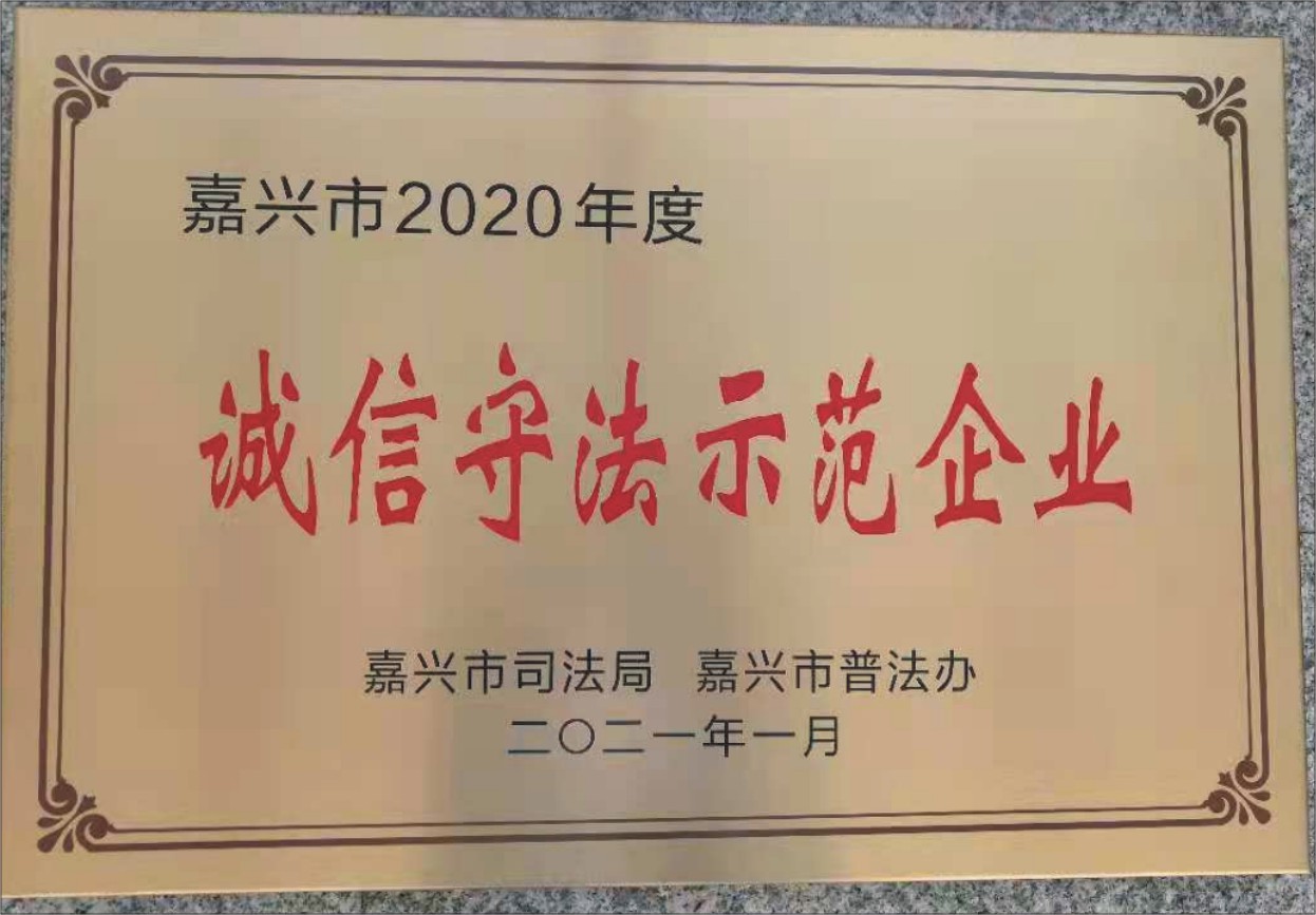 公司一貫堅(jiān)持誠(chéng)信立企、依法經(jīng)營(yíng)的原則,注重勞動(dòng)保障誠(chéng)信建設(shè)、扎實(shí)企業(yè)生產(chǎn)經(jīng)營(yíng)管理、強(qiáng)化質(zhì)量管理與質(zhì)量誠(chéng)信、廣泛開展法治宣傳教育、堅(jiān)持企業(yè)文化建設(shè),憑借著良好經(jīng)營(yíng)與誠(chéng)信守法已榮獲多項(xiàng)殊榮。此次獲命名為嘉興市“誠(chéng)信守法示范企業(yè)”,公司將再接再厲,依法經(jīng)營(yíng),著重推進(jìn)企業(yè)規(guī)范化、制度化管理,為社會(huì)營(yíng)造崇尚法治、誠(chéng)實(shí)守信的良好氛圍。