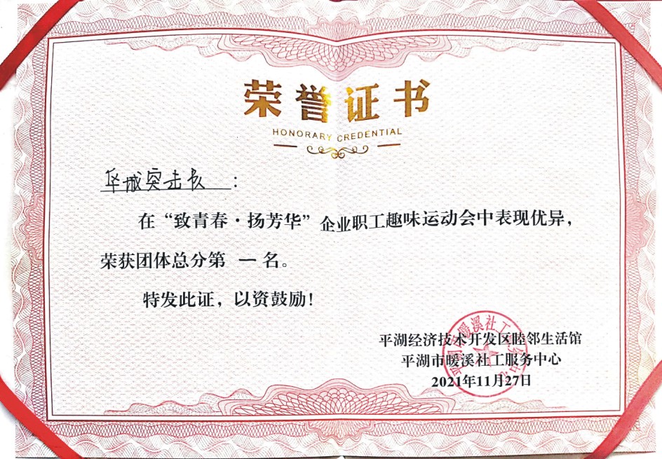 為慶祝中國共產(chǎn)黨成立100周年,充分展現(xiàn)企業(yè)員工良好的精神風(fēng)貌和健康生活理念,共同營造積極向上、充滿活力的工作氛圍,豐富員工文體生活,培養(yǎng)員工敢于挑戰(zhàn)的拼搏精神和精誠合作的團(tuán)隊(duì)精神,切實(shí)增強(qiáng)員工的凝聚力和戰(zhàn)斗力,平湖市經(jīng)濟(jì)技術(shù)開發(fā)區(qū)睦鄰館于11月27日在睦鄰館舉辦“致青春•揚(yáng)芳華”經(jīng)開企業(yè)職工趣味運(yùn)動(dòng)會(huì)。我公司由10位員工組成的兩個(gè)參賽隊(duì)“華城先鋒隊(duì)”和“華城突擊隊(duì)”參加了此次趣味運(yùn)動(dòng)會(huì)。