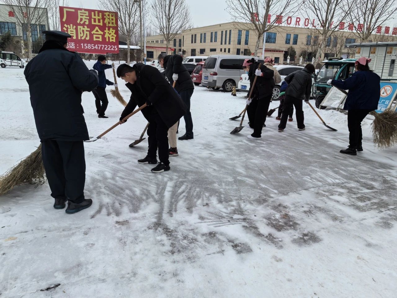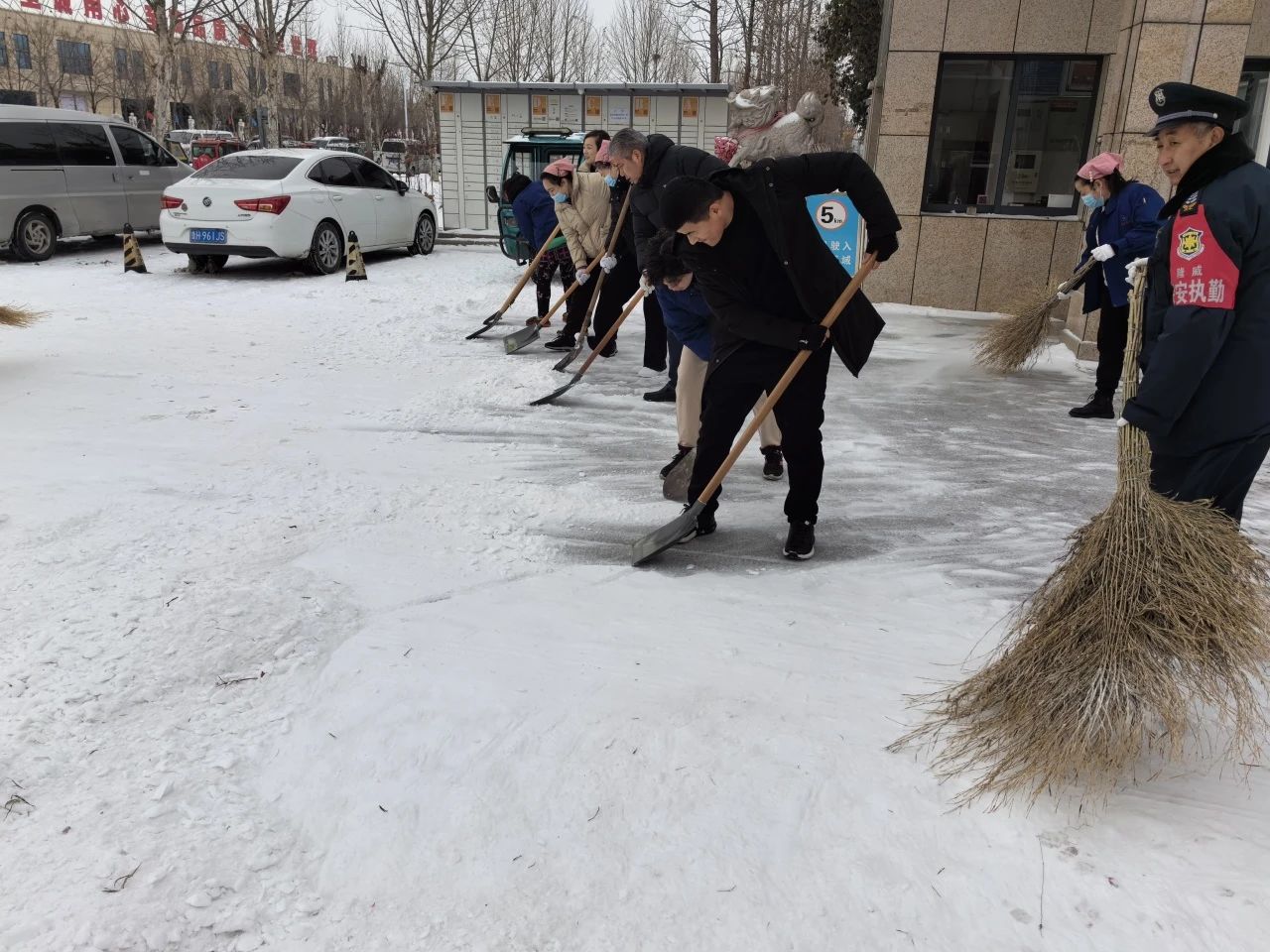 雪天踐使命,擔(dān)當暖寒冬。在大家的共同努力下,積雪得到了有效清除。