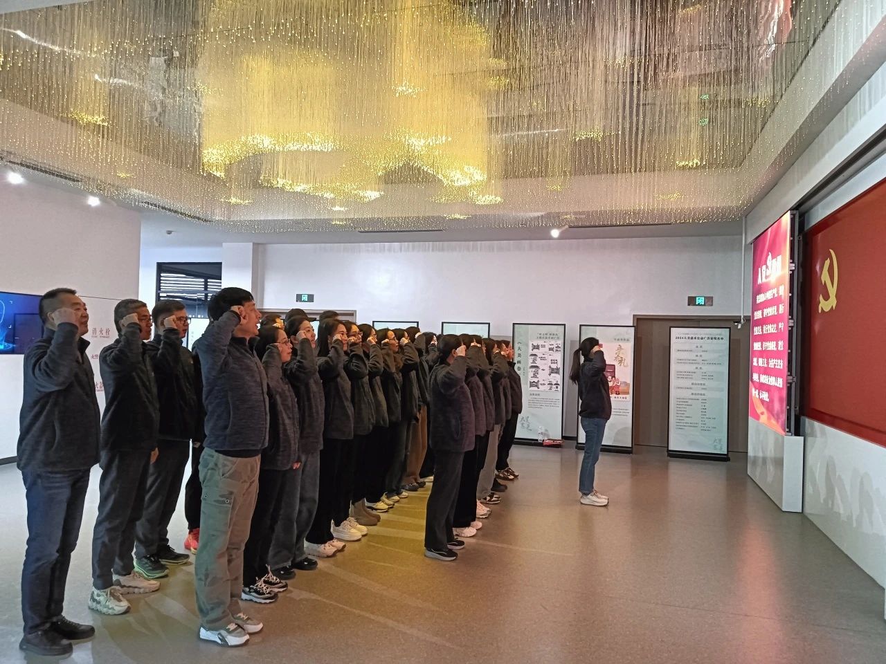 之后,在鮮艷的黨旗下,全體黨員莊嚴(yán)宣誓,重溫入黨誓詞,堅定有力的誓言回蕩在大廳內(nèi),彰顯著黨員們不忘初心、牢記使命的信念。