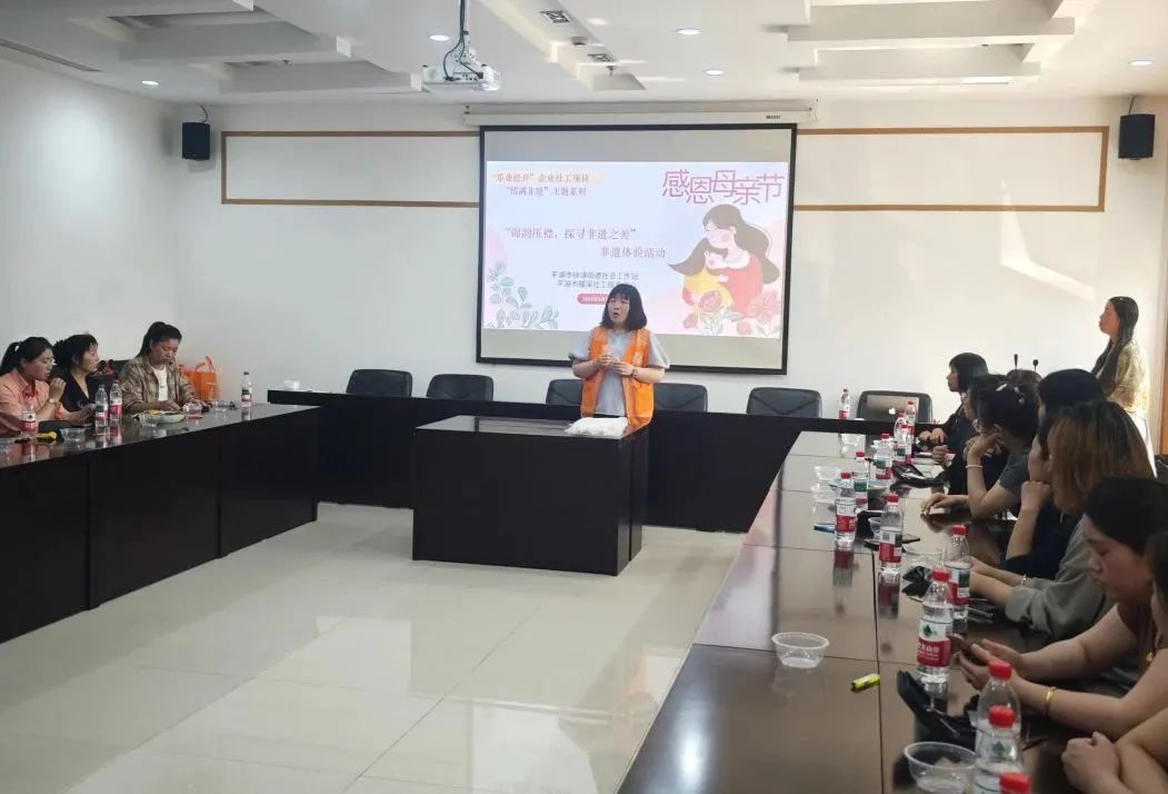當前位置:首頁 > 華城動態(tài)5月11日,平湖市鐘埭街道社會工作站在華城衣歌路組織開展“以愛為舟,照亮心途”家庭教育講座及“錦韻壓襟,探尋非遺之美”非遺體驗。本次母親節(jié)活動分為兩個環(huán)節(jié)進行:家庭教育講座及非遺壓襟體驗活動,分別邀請家庭教育高級指導(dǎo)師、正面管教家長講師周美麗老師及嘉興市美協(xié)會員佳子老師為企業(yè)職工進行活動指導(dǎo)。