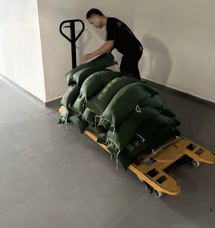 防汛沙袋作為抵御洪水的“第一道防線”,我們提前足量儲(chǔ)備。數(shù)百個(gè)填充飽滿、結(jié)實(shí)耐用的防汛沙袋整齊碼放在廠區(qū)各個(gè)關(guān)鍵點(diǎn)位,倉庫出入口、車間低洼處、排水口周邊……它們嚴(yán)陣以待,隨時(shí)能構(gòu)筑起堅(jiān)實(shí)的防水堤壩,將洪水阻隔在外。檢查電力設(shè)備防潮措施,確保每一處細(xì)節(jié)都經(jīng)得起雨水考驗(yàn)。同時(shí),組建了應(yīng)急搶險(xiǎn)隊(duì)伍,開展防汛演練,提升全員應(yīng)急處置能力。