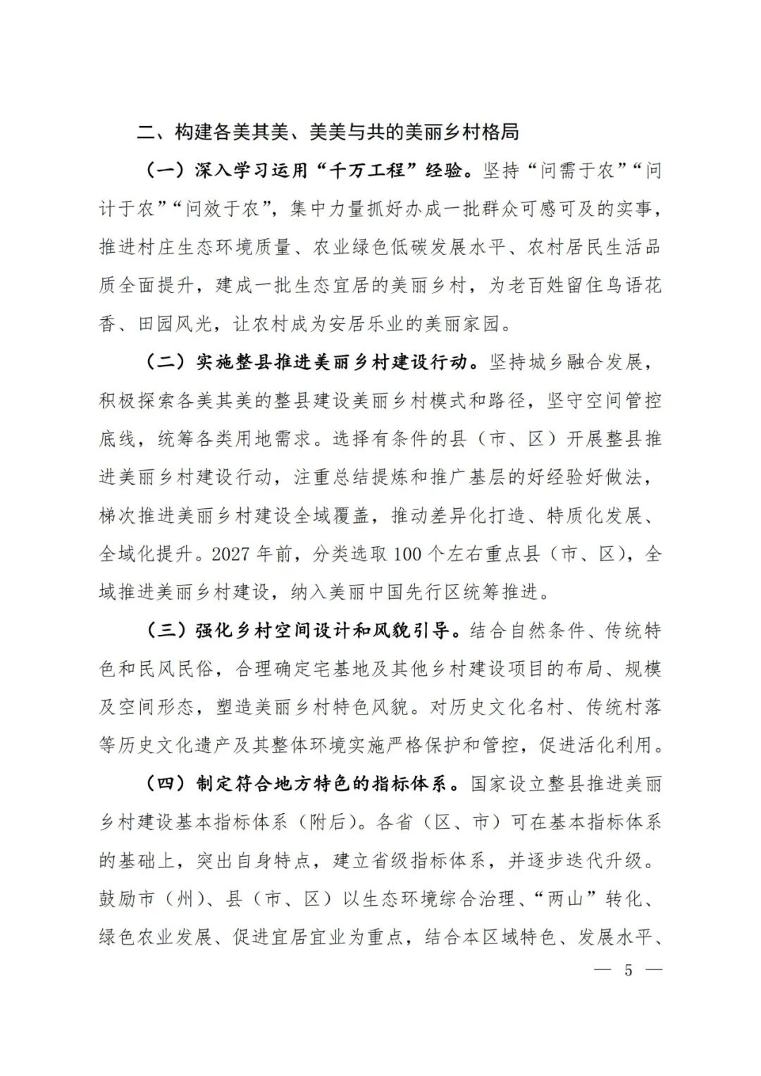《實(shí)施方案》提出的4方面重點(diǎn)任務(wù)主要包括:構(gòu)建各美其美、美美與共的美麗鄉(xiāng)村格局。實(shí)施整縣推進(jìn)美麗鄉(xiāng)村建設(shè)行動(dòng),梯次推進(jìn)美麗鄉(xiāng)村建設(shè)全域覆蓋。強(qiáng)化鄉(xiāng)村空間設(shè)計(jì)和風(fēng)貌引導(dǎo),塑造美麗鄉(xiāng)村特色風(fēng)貌。制定符合地方特色的指標(biāo)體系,逐步迭代升級(jí)。