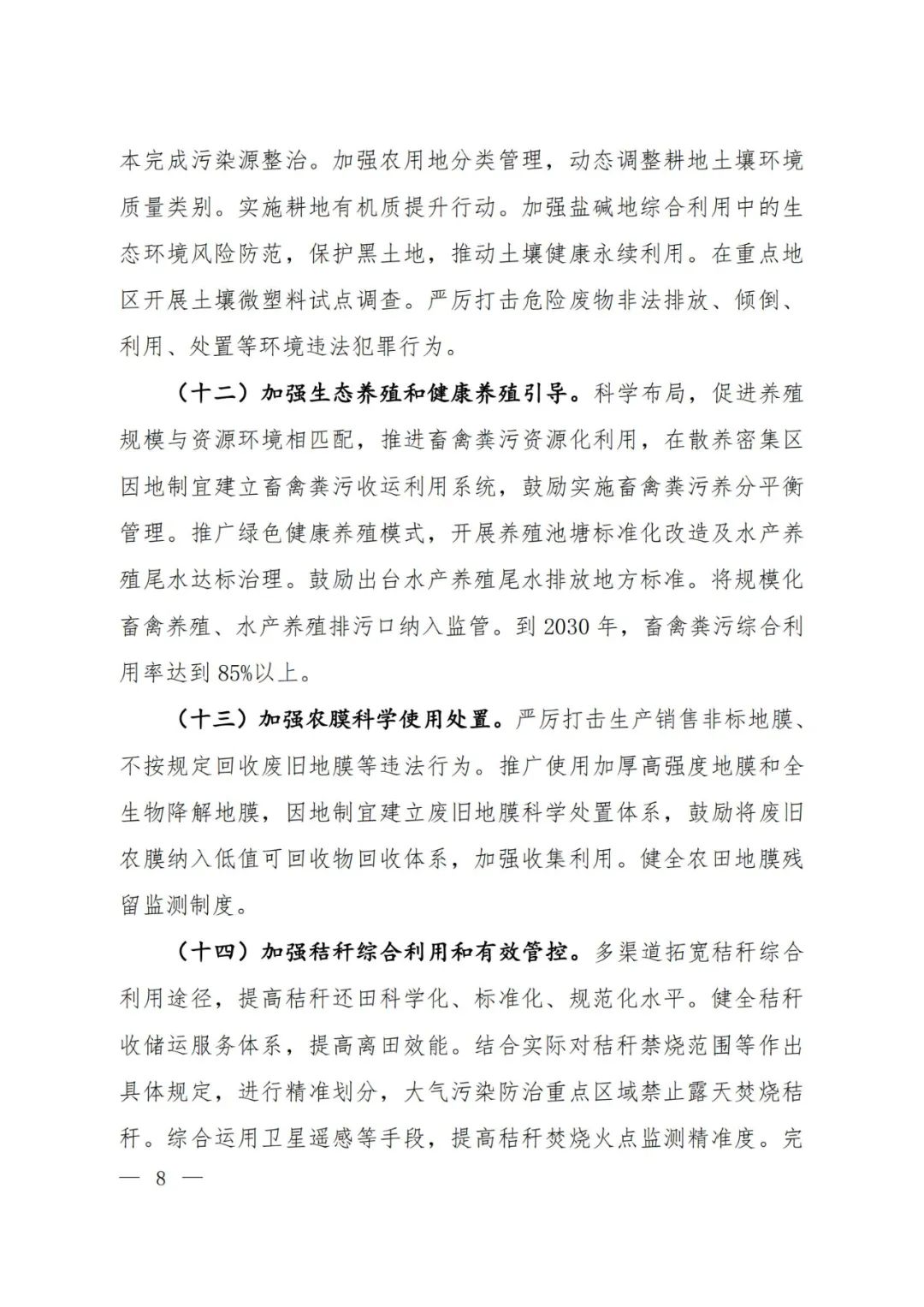 大力推進(jìn)農(nóng)業(yè)綠色低碳發(fā)展。加強(qiáng)農(nóng)用地土壤保護(hù),分階段推進(jìn)農(nóng)用地土壤重金屬污染溯源和整治全覆蓋。加強(qiáng)生態(tài)養(yǎng)殖和健康養(yǎng)殖引導(dǎo),推進(jìn)畜禽糞污資源化利用。加強(qiáng)農(nóng)膜科學(xué)使用處置,推進(jìn)秸稈綜合利用。加強(qiáng)重點(diǎn)區(qū)域農(nóng)業(yè)面源污染系統(tǒng)治理。