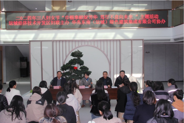 陽春三月天,春花展新顏。3月8日,為慶祝第114個“三八”國際婦女節(jié),弘揚時代精神,展示巾幗風(fēng)采,由運城經(jīng)濟技術(shù)開發(fā)區(qū)婦聯(lián)主辦,華兆東南綠建承辦的“巾幗奉獻綻芳華 篤行不怠向未來”活動在裝配式建筑產(chǎn)業(yè)基地召開。開發(fā)區(qū)黨工委副書記黃梅芳,人力資源部部長何光華,華兆東南綠建總經(jīng)理王永學(xué)等參加此次活動。